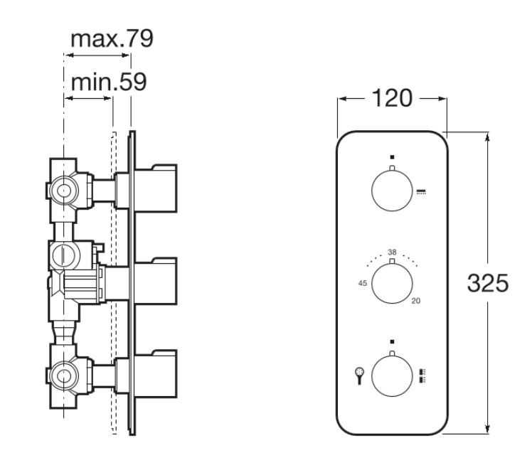 Podomítková termostatická 3-cestná baterie PUZZLE-T bez sprchového příslušenství, chrom (A5A2778C00)