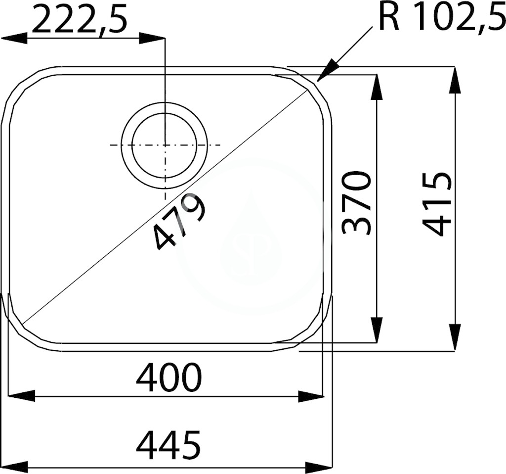 - dřez 400 × 370 × 170 mm