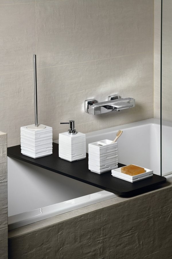 Série QUADROTTO dodá koupelně jedinečný styl. Pokud chcete doplňky využít jako jeden z výrazných prvků koupelny, je pro Vás QUADROTTO správnou volbou. Vyrobeno z polyresinu, v nabídce v barvách černá, bílá a tortora.