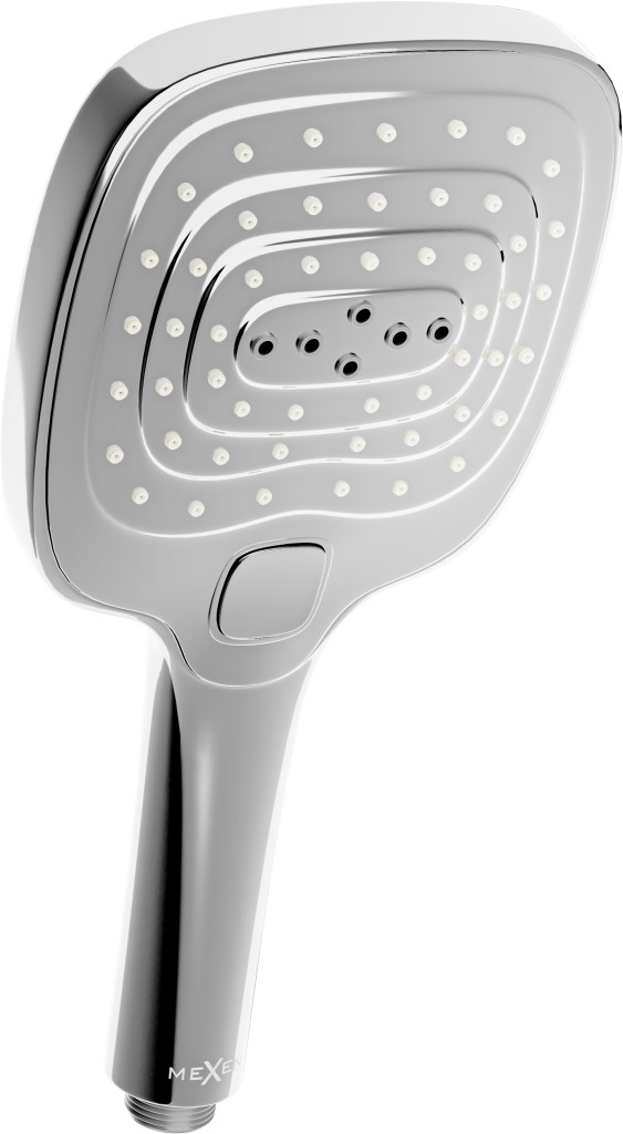 Plastová ruční sprcha od výrobce MEXEN R-17, čtvercového tvaru se třemi funkcemi a standardním připojením G 1/2". Rozměry: výška: 235 mm, šířka hlavy: 120 mm. Opatřená je povrchovou úpravou v různých barevných variantách.