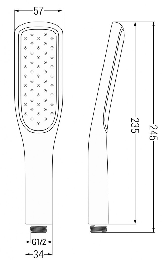 Plastová ruční sprcha od výrobce MEXEN R-49 obdélníkového tvaru s jednou funkcí a standardním připojením G 1/2". Rozměry: výška: 235 mm, šířka hlavy: 57 mm. Opatřená je povrchovou úpravou v různých barevných variantách.