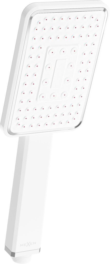 Plastová ruční sprcha od výrobce MEXEN R-54 obdélníkového tvaru s jednou funkcí a standardním připojením G 1/2". Rozměry: výška: 260 mm, šířka hlavy: 87 mm. Opatřená je povrchovou úpravou v různých barevných variantách.