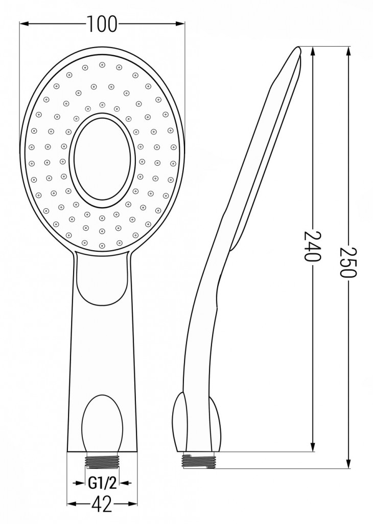 Plastová ruční sprcha od výrobce MEXEN R-73, kulatého tvaru s jednou funkcí a standardním připojením G 1/2". Rozměry: výška: 240 mm, průměr hlavy: 100 mm. Opatřená je povrchovou úpravou v různých barevných variantách.