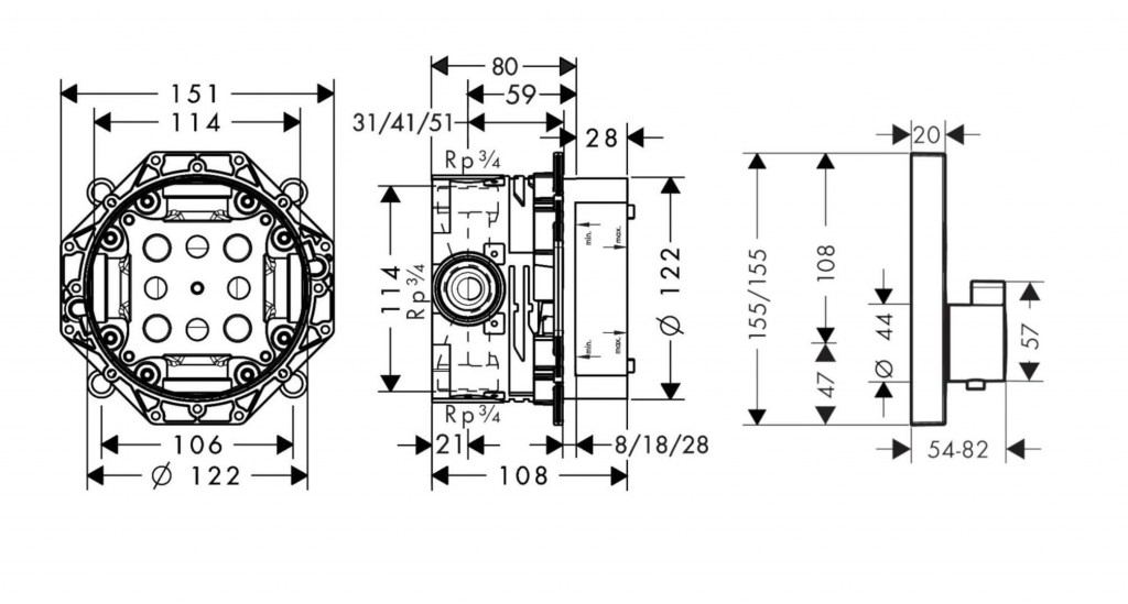 - vhodné pro všechny sprchové, vanové a termostatové vrchní sady pro podomítkové instalace