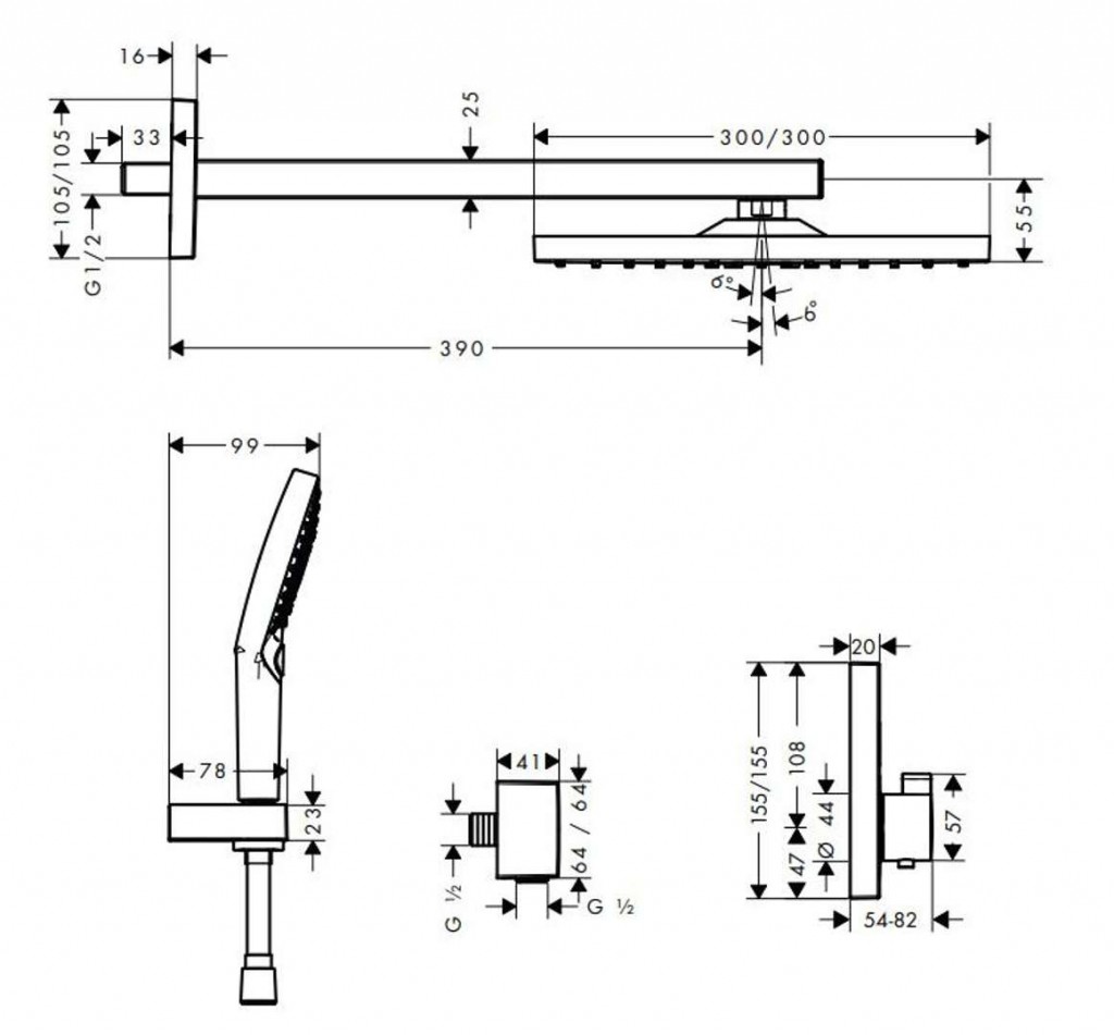 - kulový kloub s nastavitelným úhlem horní sprchy
