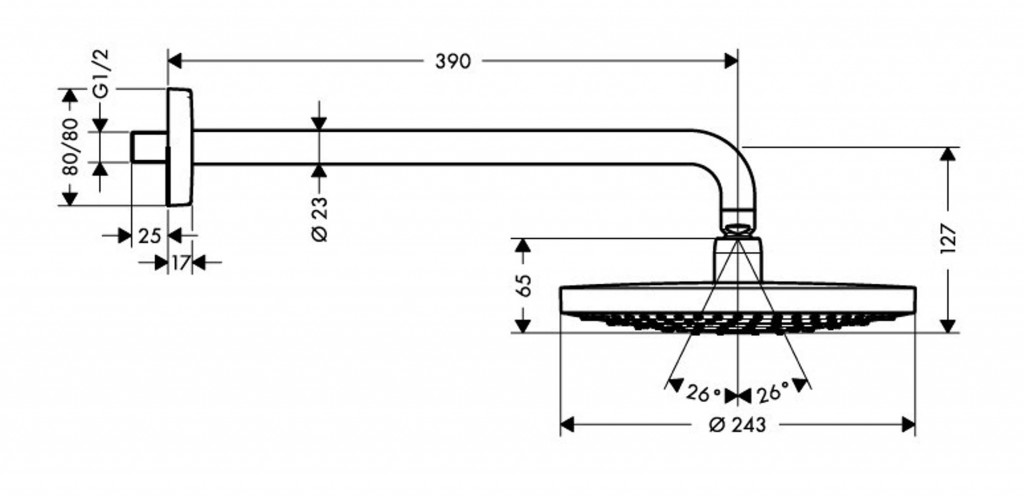 - délka ramena sprchy: 390 mm