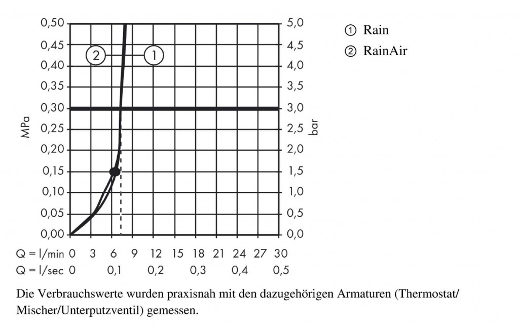 - průtokové množství proudu RainAir (při 0,3 MPa): 9 l/min