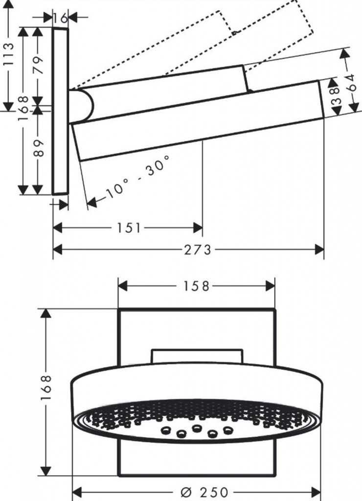 - rameno sprchy vertikálně nastavitelné o 10-30°