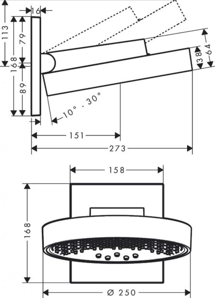 - hlavová sprcha vertikálně nastavitelná v rozmezí 10-30°