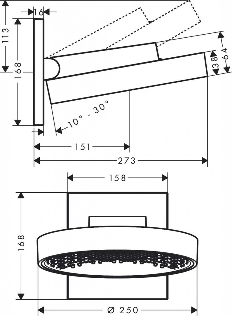 - rameno sprchy vertikálně nastavitelné o 10-30°