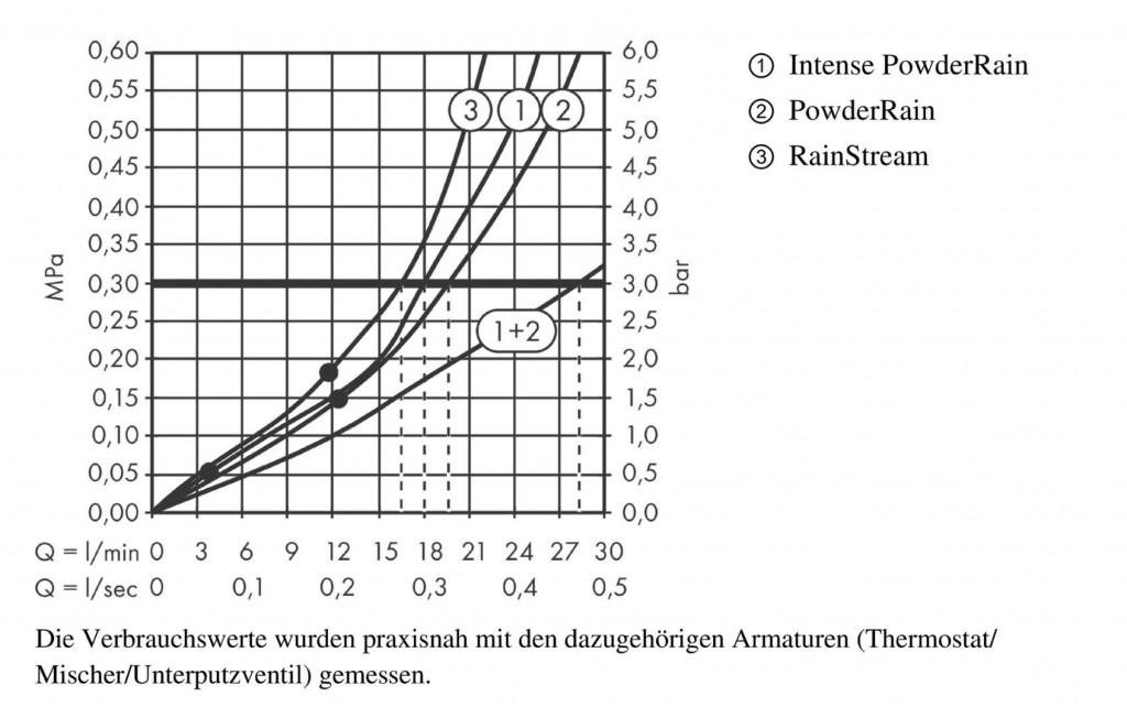 - průtokové množství Intense PowderRain při 3 barech: 18 l/min