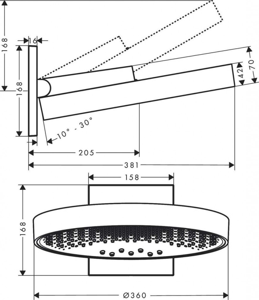 - sprchovou hlavici lze svisle naklápět o 10-30°