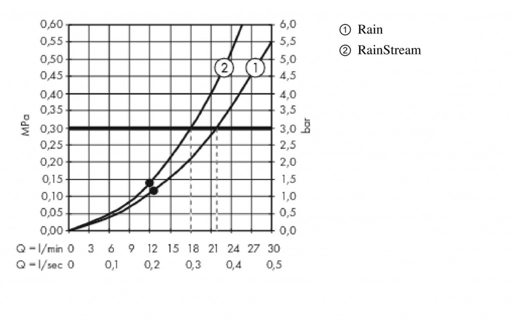 - průtokové množství proudu RainStream (při 0,3 MPa): 18 l/min