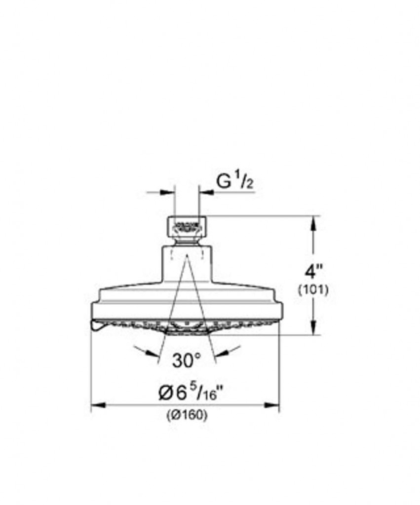 Hlavová sprcha je použitelná od minimálního průtokového tlaku 7,5l/min a maximální průtok je 9,5l/min