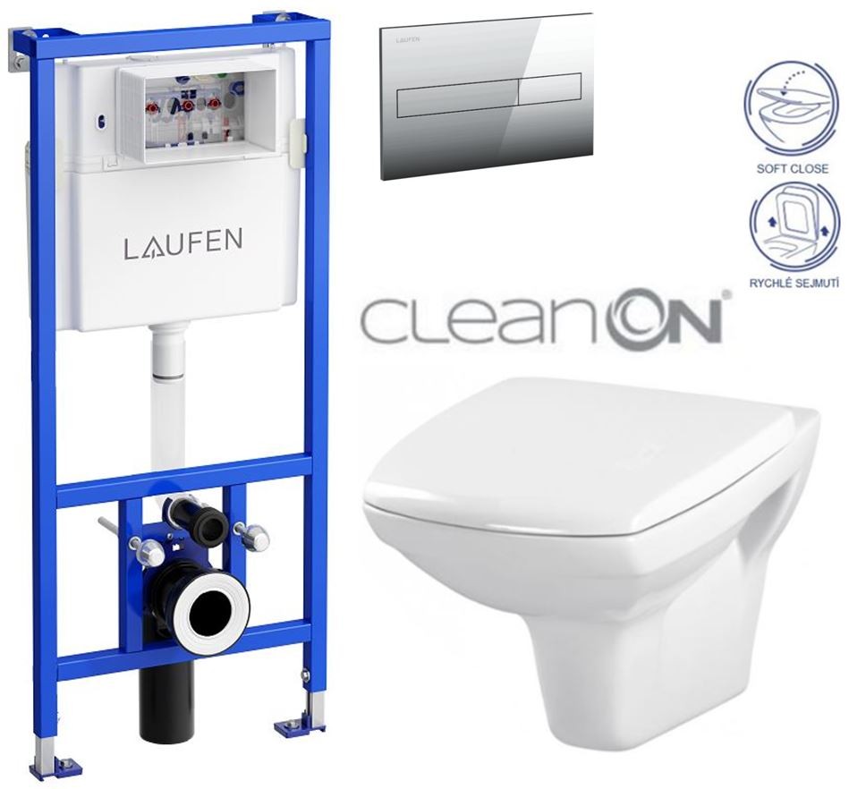 WC závěsná mísa CARINA NEW CleanOn elegantního vzhledu s horizontálním odpadem, funkcí splachování 2,5/5, 3/5l.