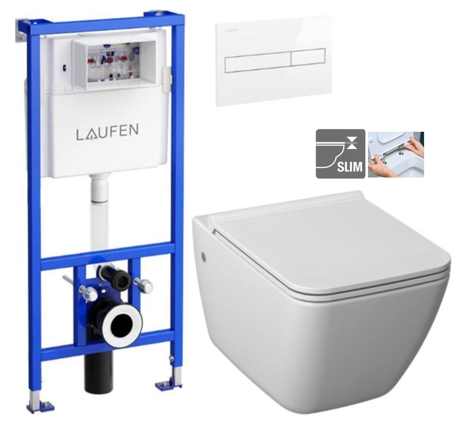 Pozor na výšku osy odpadu, která je oproti běžným klozetům o 3 cm výš. Správné nastavení vypouštěcího ventilu v podomítkovém modulu je splachovací množství 4,5/3l.