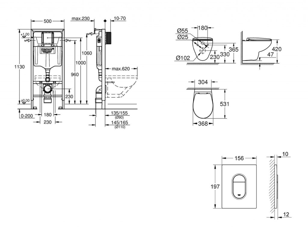 - WC keramika s plochou menší než 205 mm vyžaduje dodatečné příslušenství 38 779 000