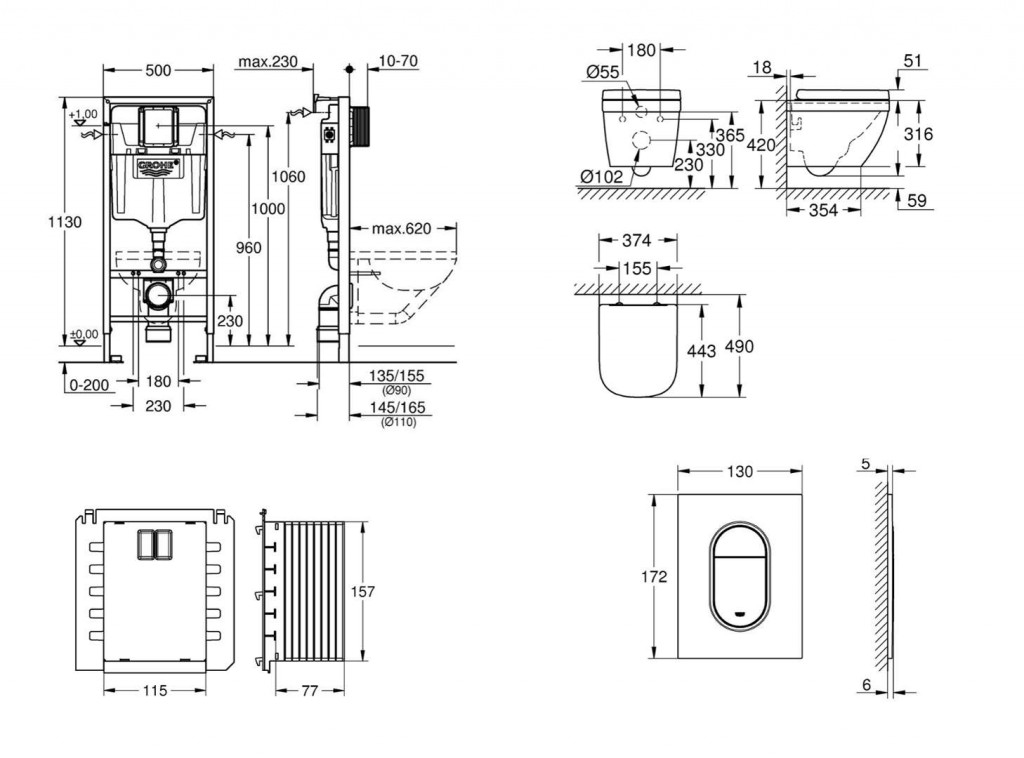 - WC keramika s plochou menší než 205 mm vyžaduje dodatečné příslušenství 38 779 000