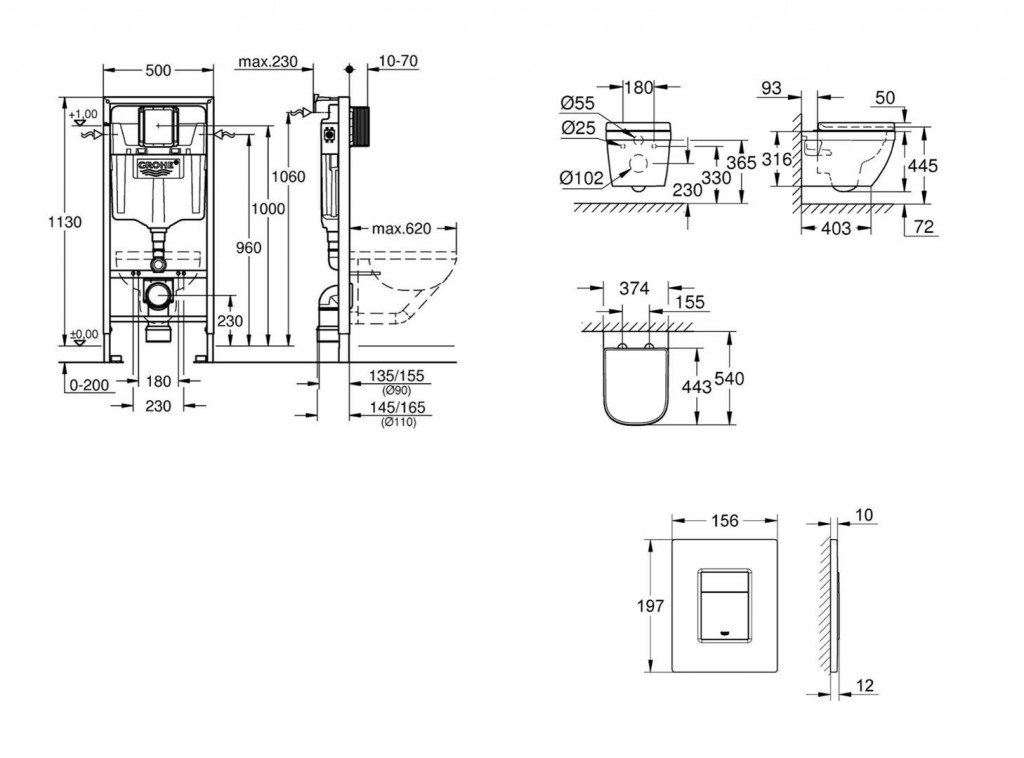 - WC keramika s plochou menší než 205 mm vyžaduje dodatečné příslušenství 38 779 000