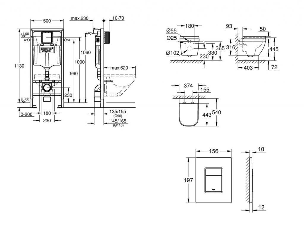 - WC keramika s plochou menší než 205 mm vyžaduje dodatečné příslušenství 38 779 000