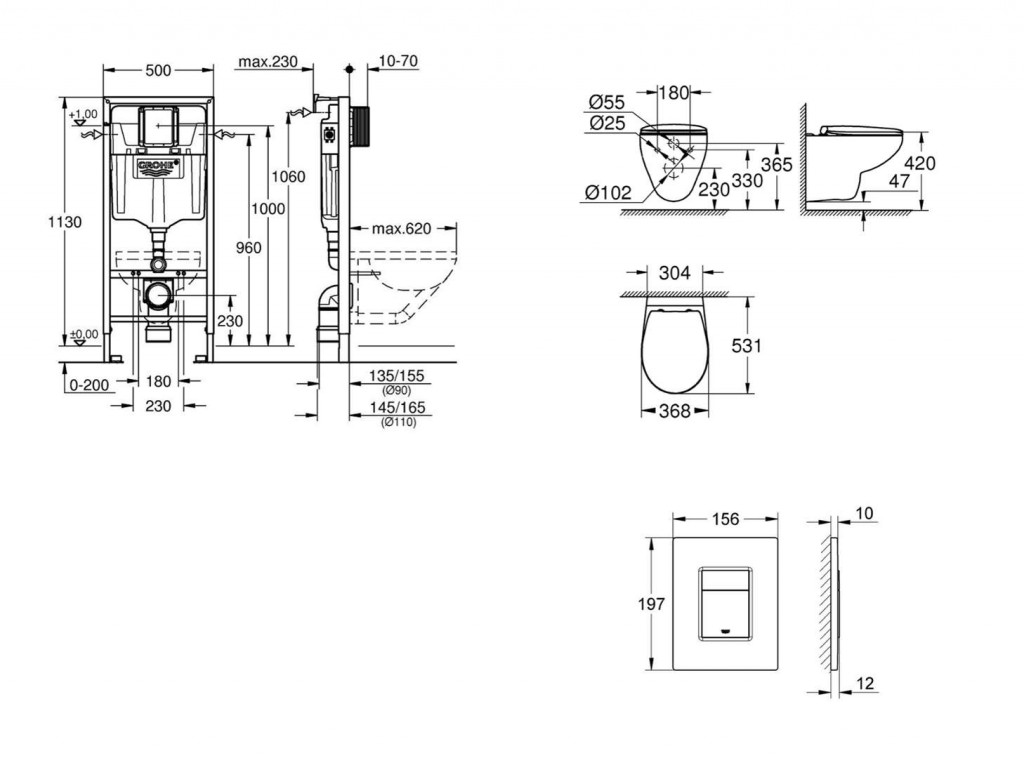 - WC keramika s plochou menší než 205 mm vyžaduje dodatečné příslušenství 38 779 000