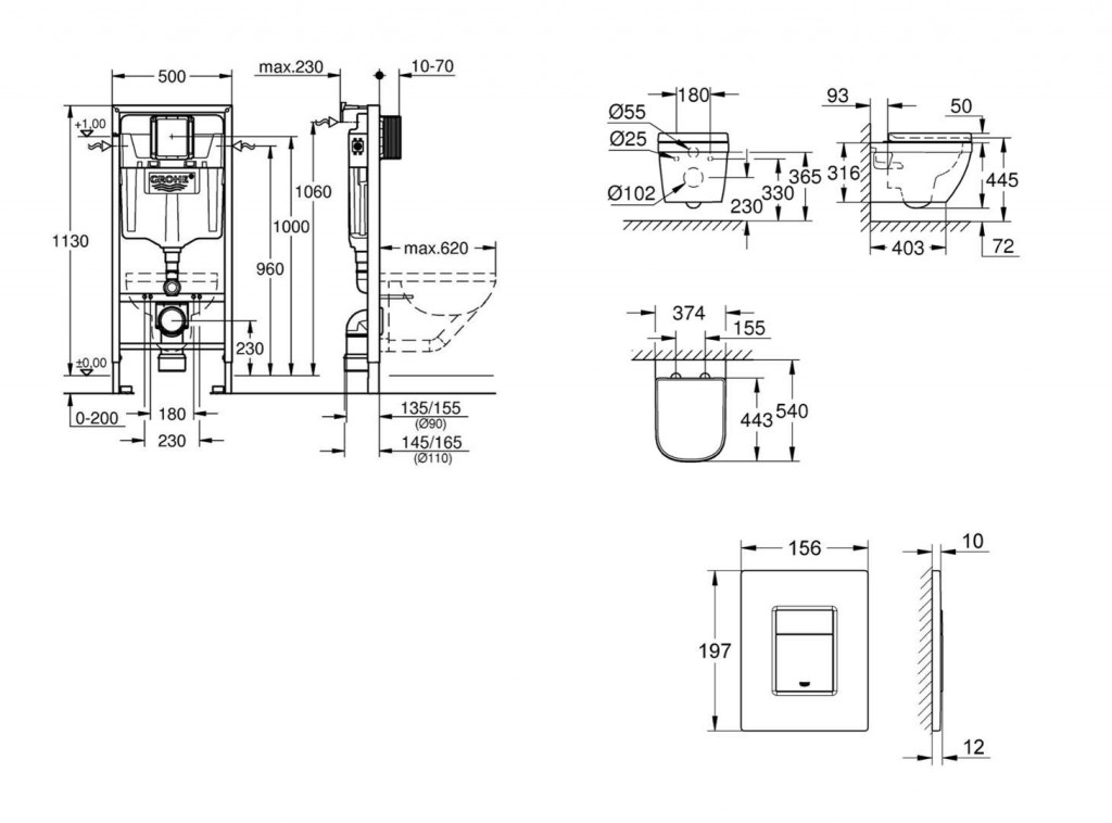 - WC keramika s plochou menší než 205 mm vyžaduje dodatečné příslušenství 38 779 000