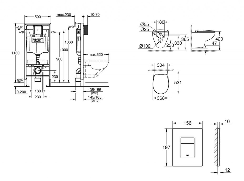 - WC keramika s plochou menší než 205 mm vyžaduje dodatečné příslušenství 38 779 000