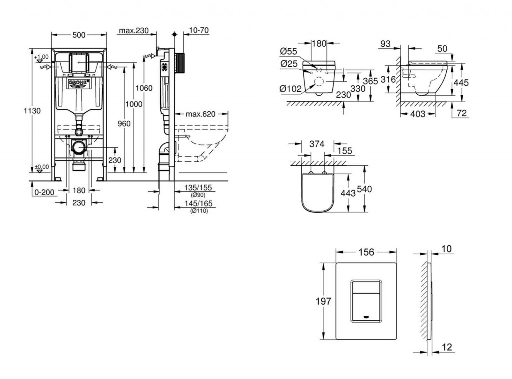- WC keramika s plochou menší než 205 mm vyžaduje dodatečné příslušenství 38 779 000