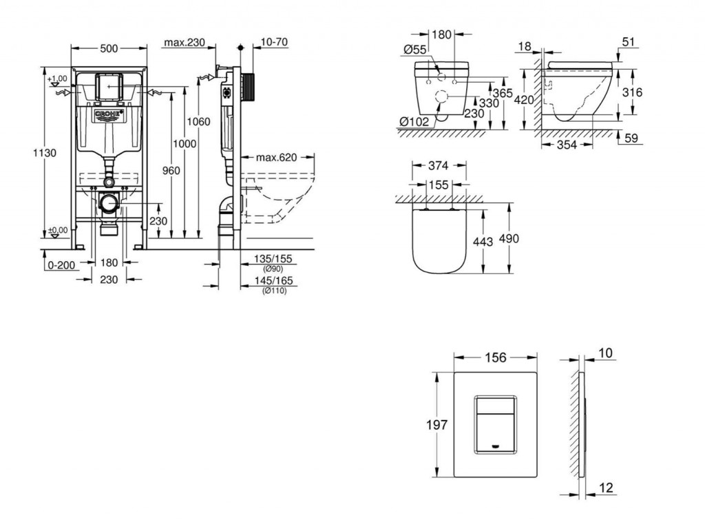 - WC keramika s plochou menší než 205 mm vyžaduje dodatečné příslušenství 38 779 000