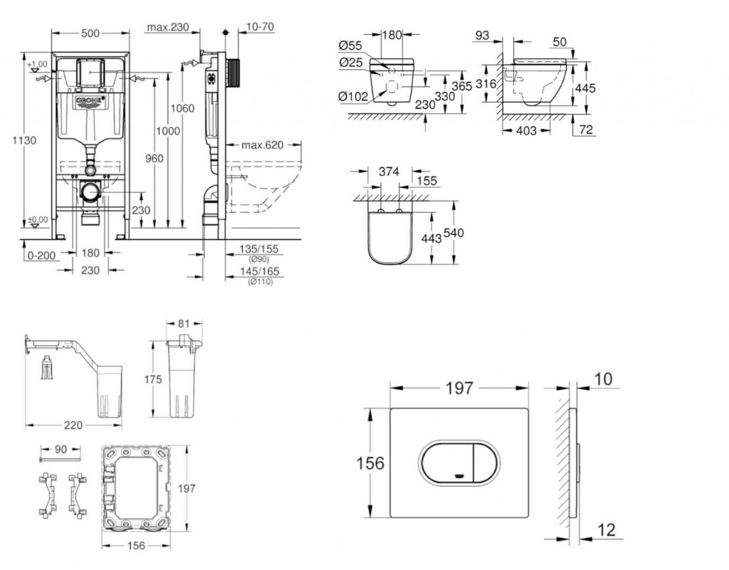 - pro všechna splachovací tlačítka GROHE s rozměry 156 x 197 mm