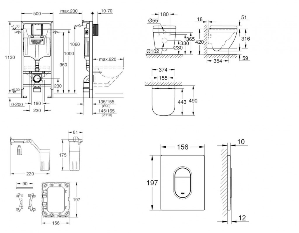 - pro všechna splachovací tlačítka GROHE s rozměry 156 x 197 mm