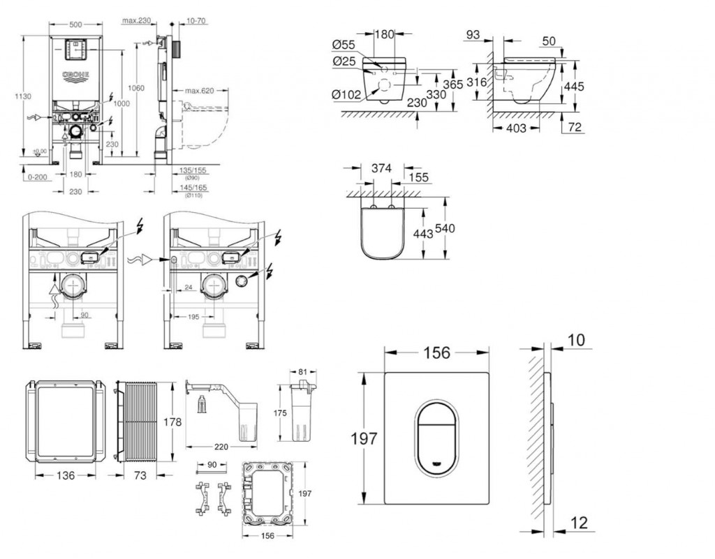 - pro všechna splachovací tlačítka GROHE s rozměry 156 x 197 mm