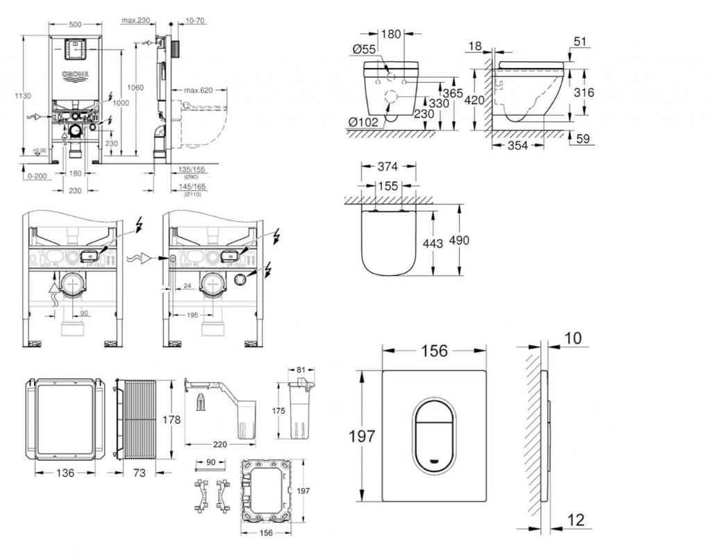 - pro všechna splachovací tlačítka GROHE s rozměry 156 x 197 mm