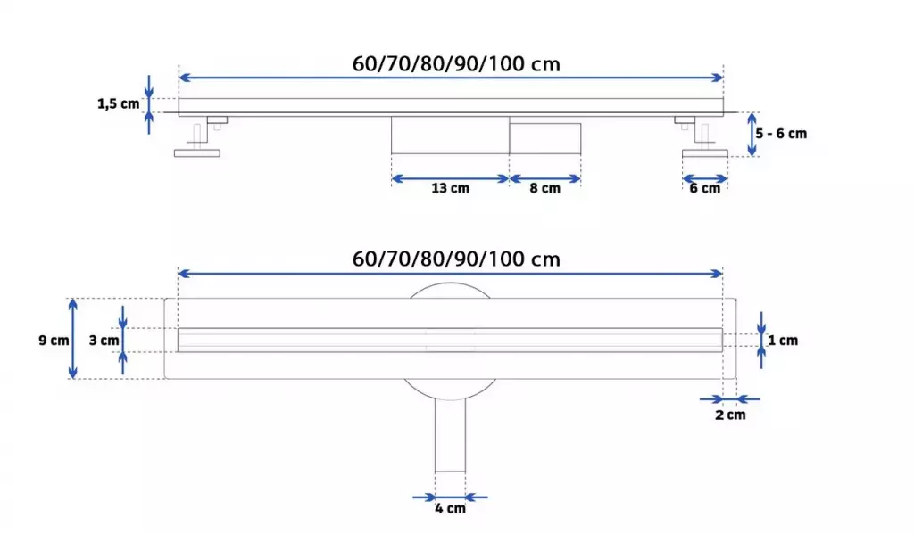 V kompletu najdete: maskovací profil, plastový sifon, těsnicí přírubu, vyrovnávací nožičky, plastové stabilizátory roštu.