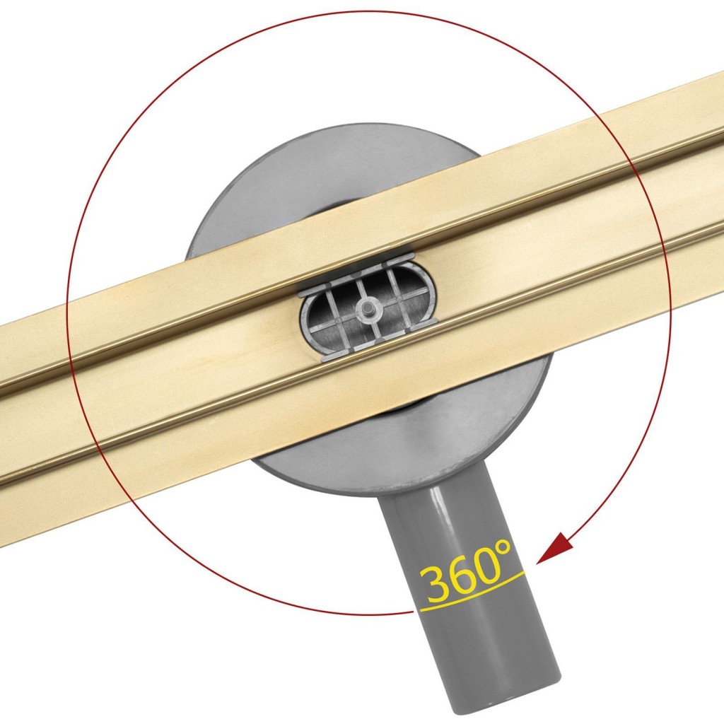 Minimalistický sprchový žlab ve zlaté lesklé barvě nádherně doplní jakýkoli styl koupelny. V tmavé dlažbě vytvoří netradiční kontrast, ve světlé dokonale zanikne. Z celého setu vidíte jen jemný zlatý rámeček doplněný o 1 cm široký maskovací profil. Díky tomu se stane žlab přirozenou součástí celého interiéru.