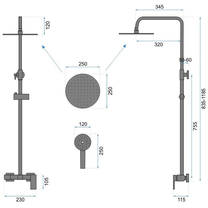 | Balení | skrytá baterie, dešťová sprcha, rameno k dešťové sprše, hubice, 1500 mm hadice, sluchátko, držák sluchátka, mřížky |