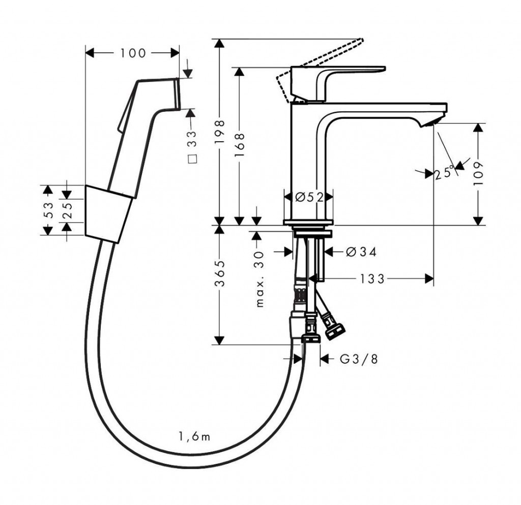 Páková umyvadlová baterie s ruční sprchou Bidette a sprchovou hadicí
