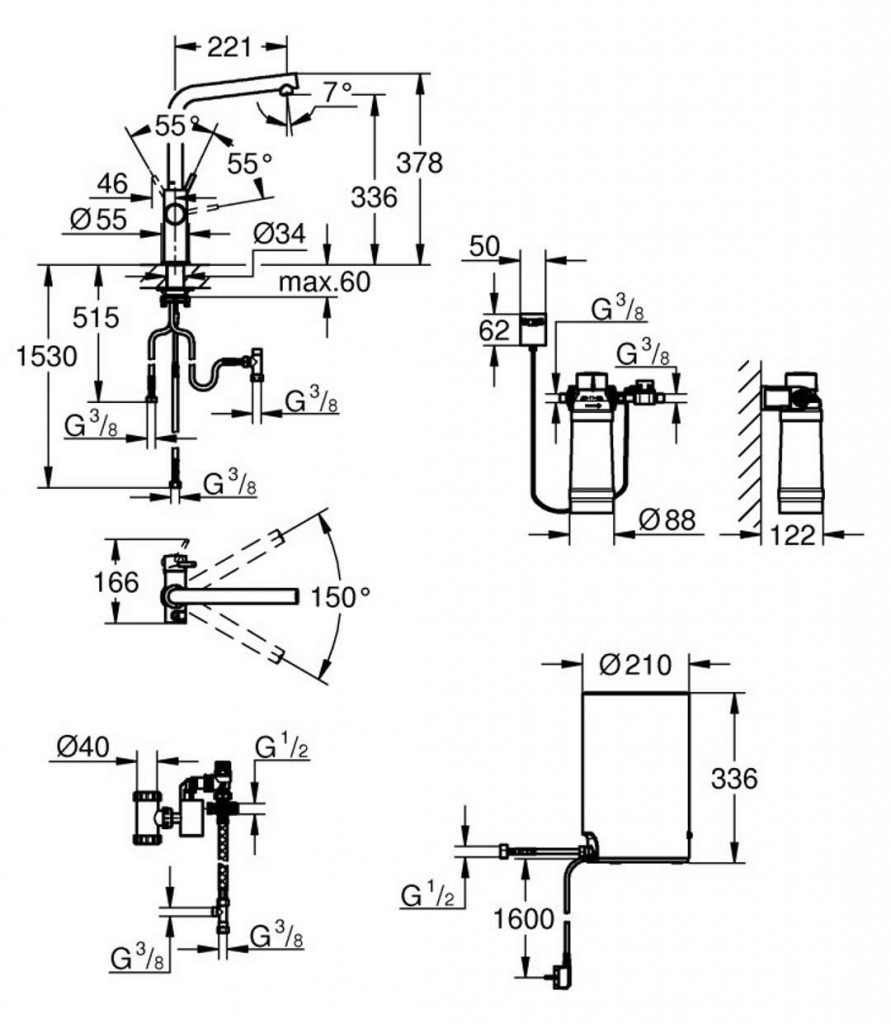 - s flexibilní připojovací hadicí a výstupem pro vařící vodu