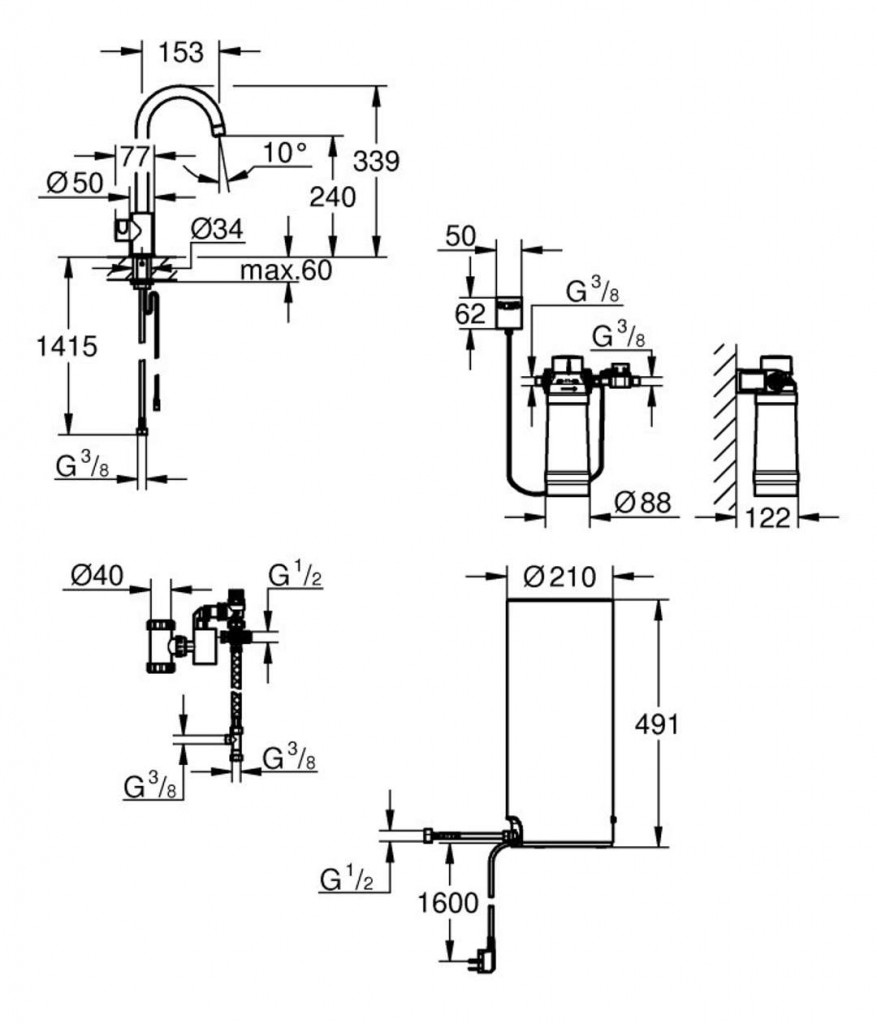 Dřezový ventil Mono s filtrací a bojlerem GROHE Red