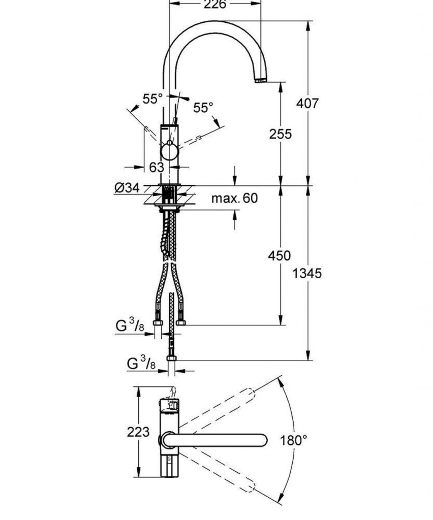 - otočný izolovaný výtok 180°
