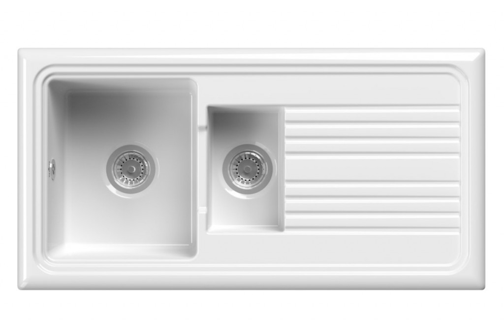 - zářivě bílý keramický dřez ve vysokém lesku s odkapávačem a vaničkou