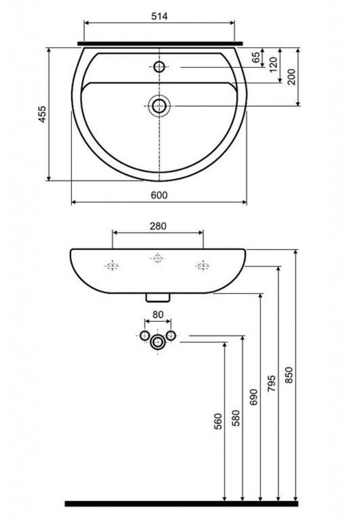 Umyvadlo, kombinovatelné s polosloupem