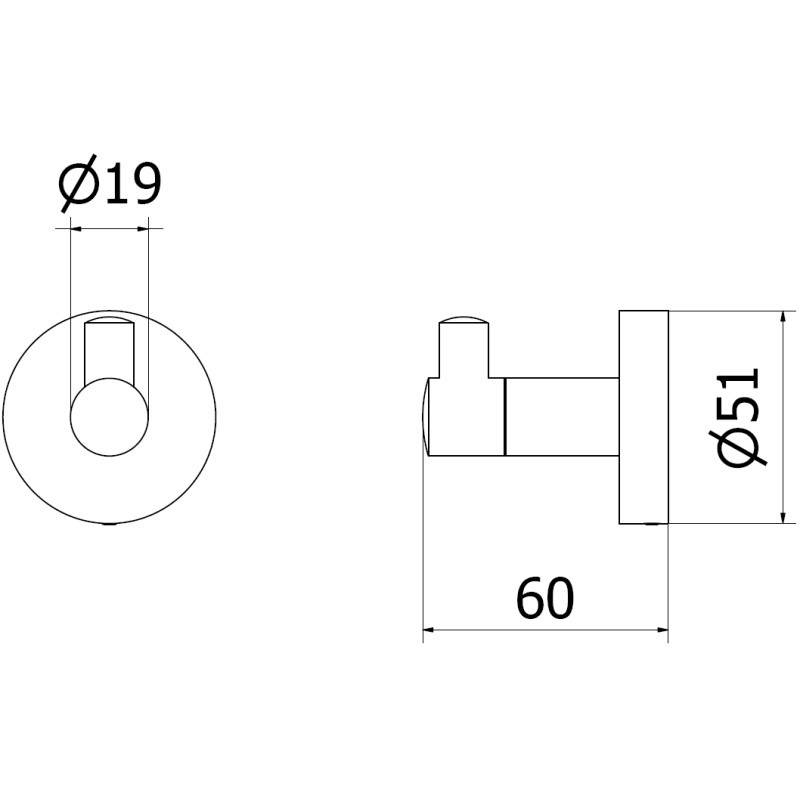 Specifikace produktu: Materiál: Kov Povrchová úprava: Černý chrom Šířka: 5,1 cm Výška: 5,1 cm Vzdálenost od zdi: 6 cm