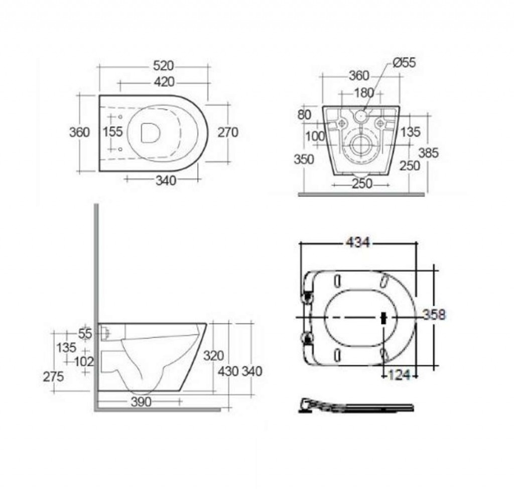 KLUDI-RESA R Závěsný klozet se skrytým upevněním