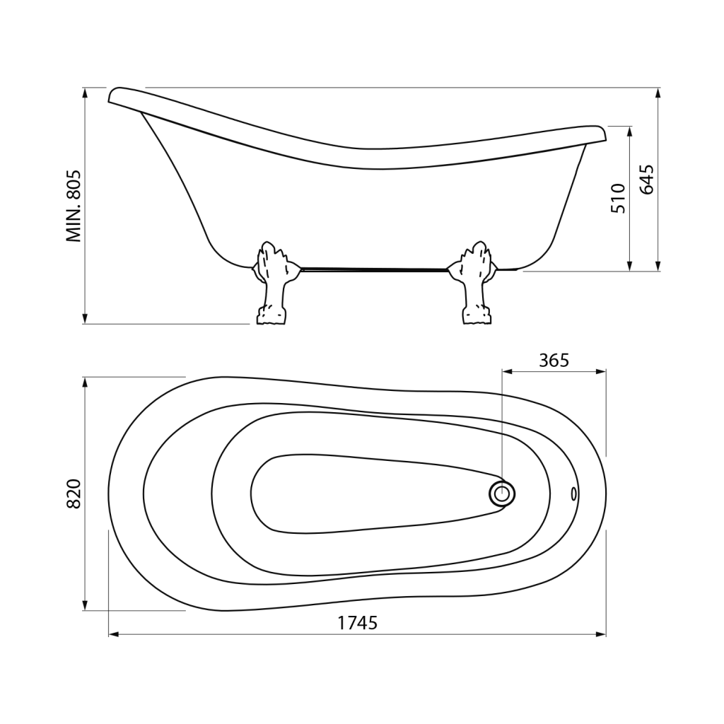POLYSAN - RETRO volně stojící vana 174,5x82x80,5cm, bílá, nohy bronz (43388)