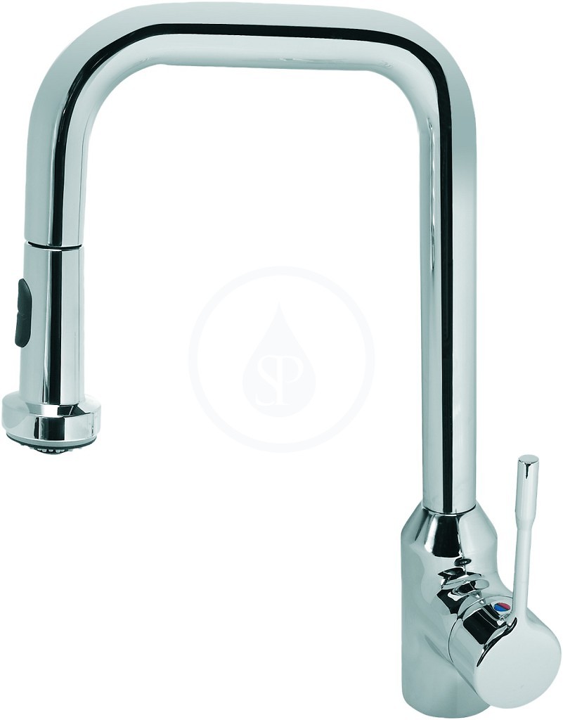 Kuchyňská páková baterie s vytahovací ruční sprchou a otočným ramenem