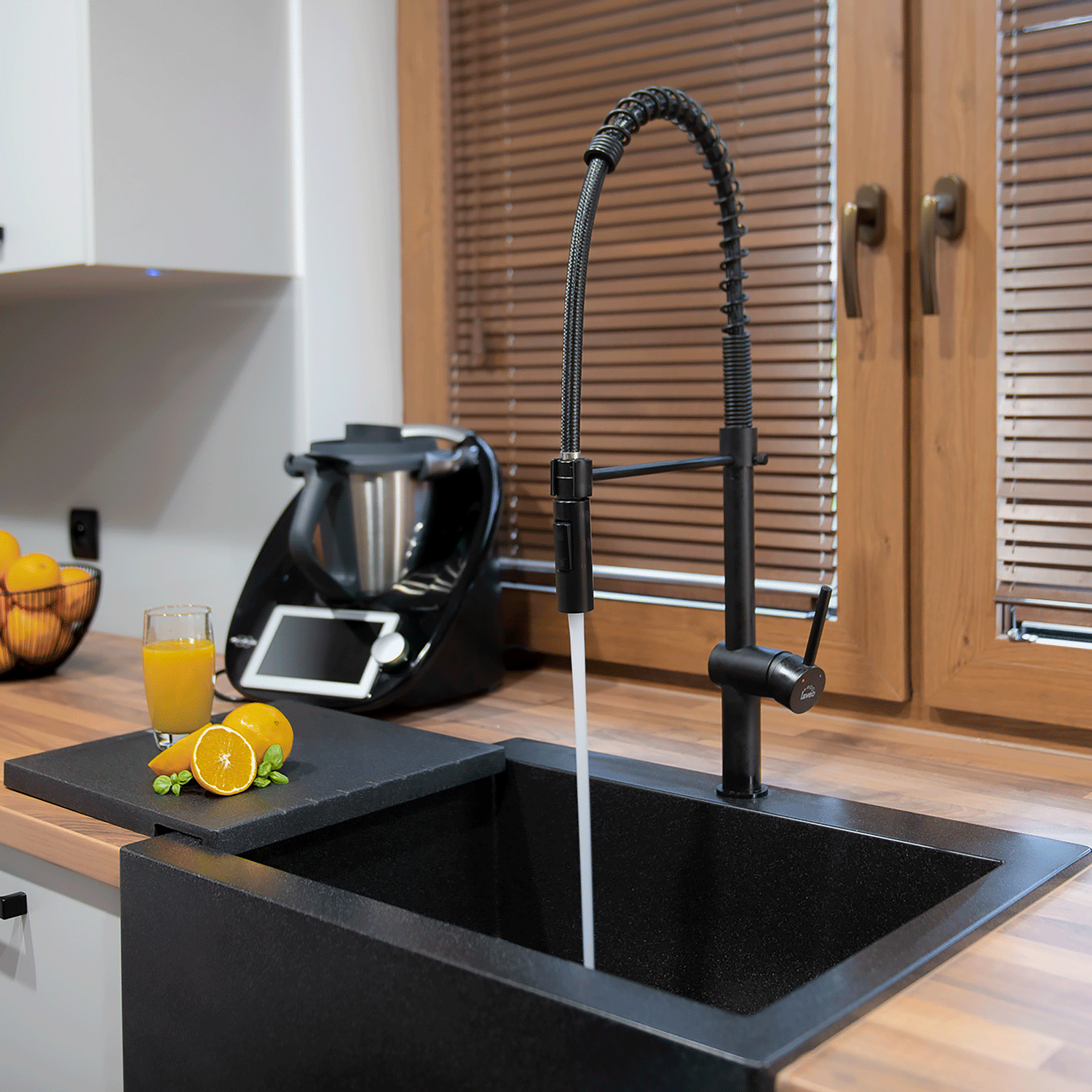 Kuchyňský model Rhea zaujme svou originalitou. Elegantní linie, pružina vinoucí se kolem hadice výtoku a harmonické tvary se spojují a nabízejí funkčnost. Vysoký výtok umožňuje maximální prostor mezi baterií a dřezem, což zajišťuje pohodlné mytí. Baterie Rhea se vyznačuje pohyblivým výtokem, který umožňuje snadné čištění neprakticky dostupných hrnců a pánví. Výtok baterie je navíc vybaven přepínačem průtoku vody. Výrobek je vybaven odolnou keramickou kartuší, která umožňuje pohodlné nastavení průtoku vody s maximálním průtokem 8 litrů za minutu. Všestranná chromová nebo černá povrchová úprava baterie je perfektním doplňkem minimalistických i moderních interiérů. Rhea se doporučuje pro velké dřezy a mycí prostory umístěné na kuchyňských ostrůvcích. Na tento model se vztahuje 8letá záruka a doručení až ke dveřím.