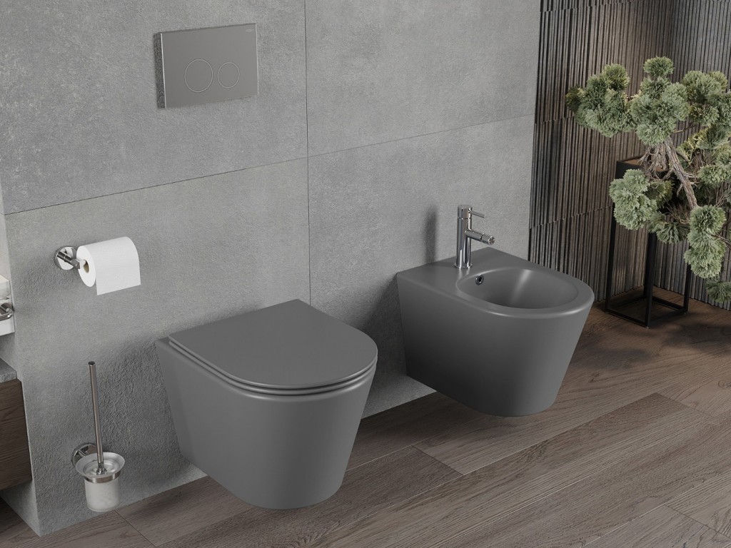 Součástí závěsné WC mísy je duroplastové sedátko SLIM s pomalým zavíráním a snadným uvolněním.