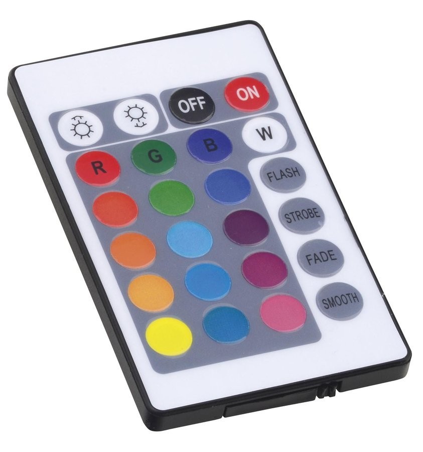 Multifunkční dálkový ovladač s IR přijímačem umožňuje ovládat všechny RGB LED pásky se společnou anodou. Umožňuje nastavení statické barvy, měnění barev v dynamickém módu, nastavení rychlosti změny, atd.
