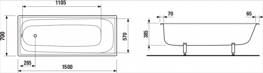 Nohy k vaně a odtokovou soupravu je nutné objednat zvlášť.